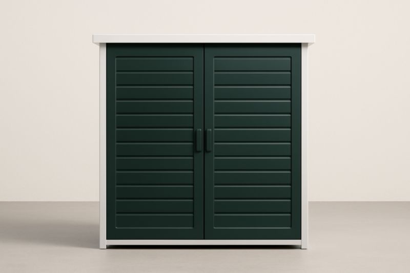Ce coffre de rangement est fabriqué en résine plastique, offrant une solution durable pour le stockage. Il est principalement de couleur marron.
